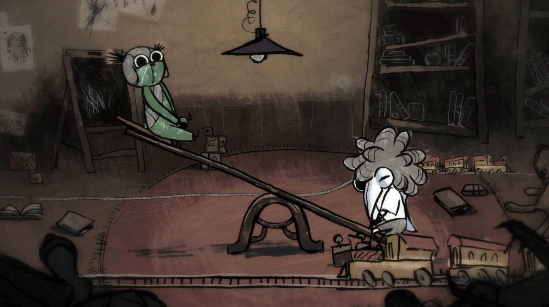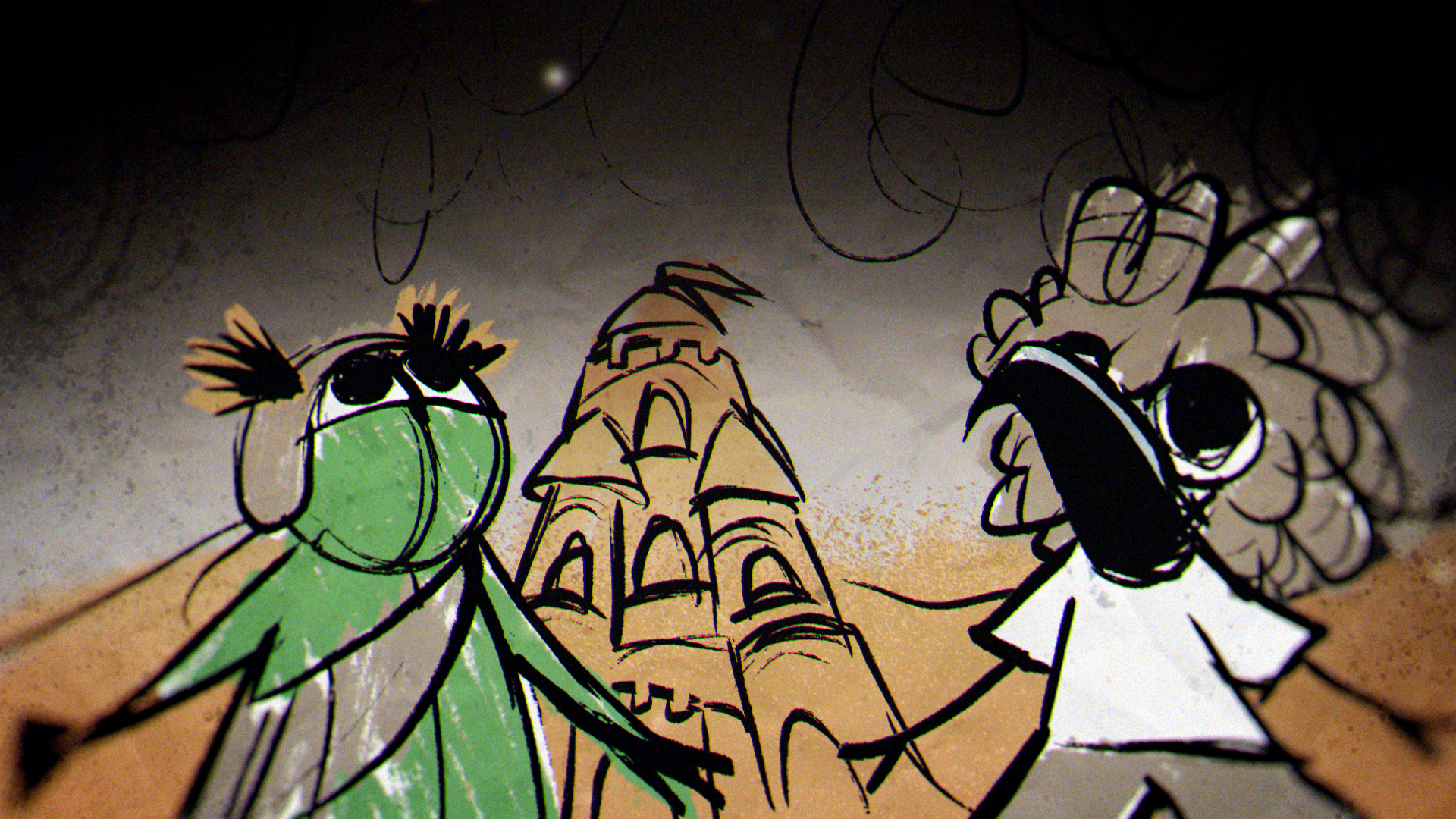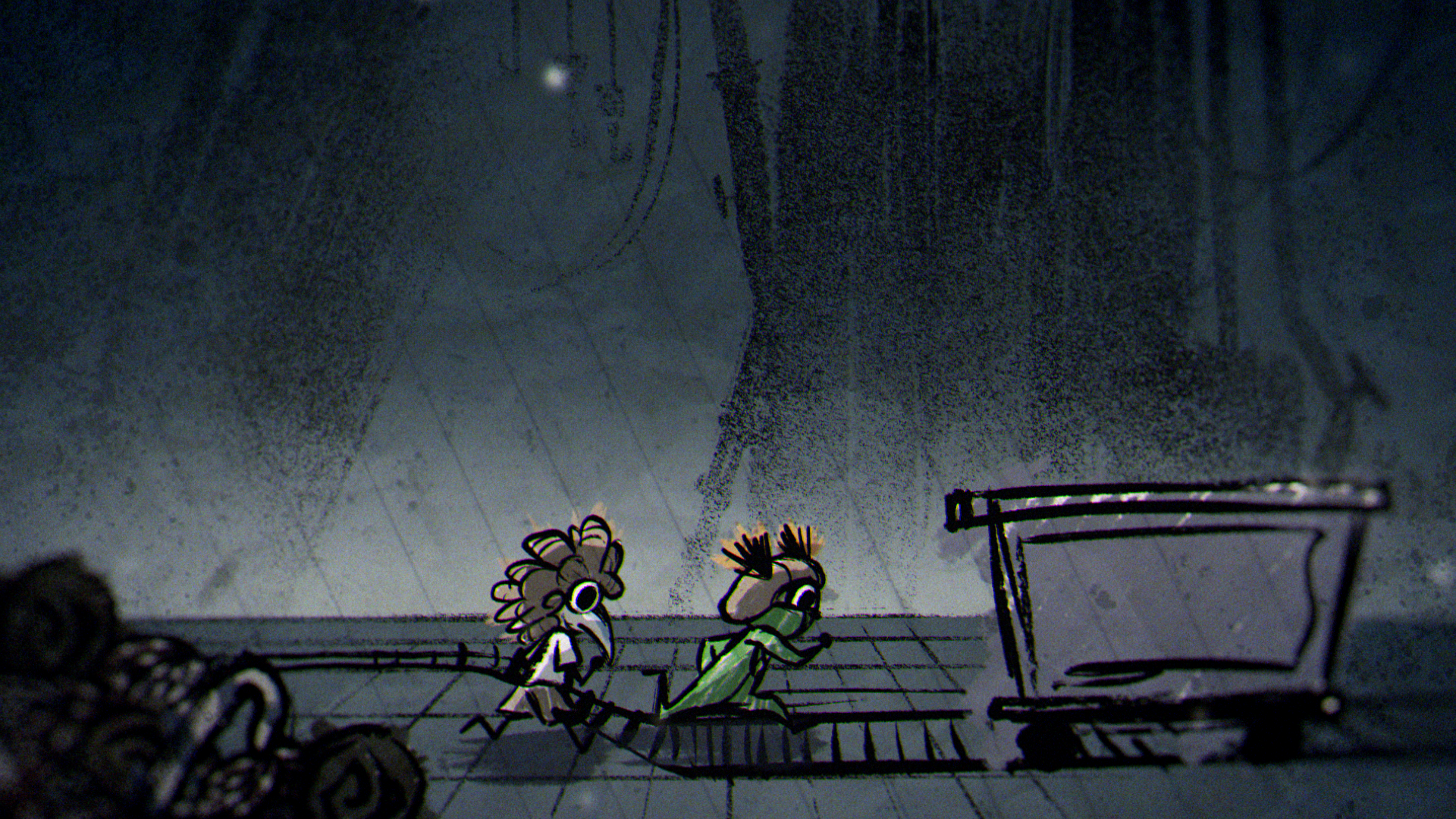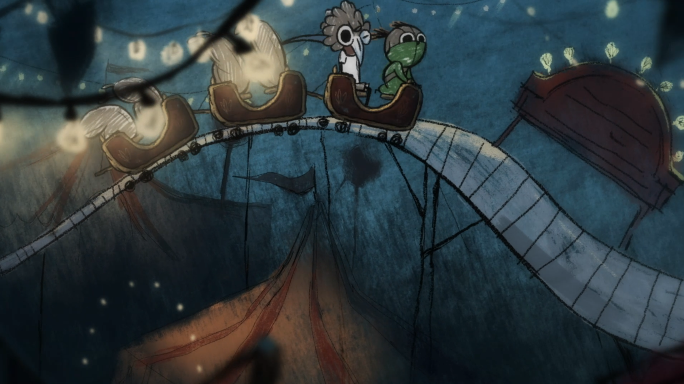 The animation was created frame by frame, drawing inspiration from the raw charm and creepiness of children’s drawings. These expressive, hand-animated characters were paired with richly textured background paintings, drawn in a crayon-like style that added unease and a storybook quality to the nightmares on screen.