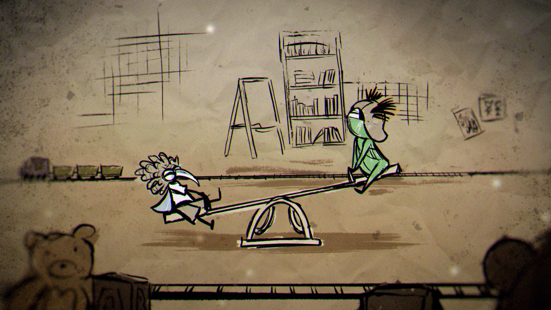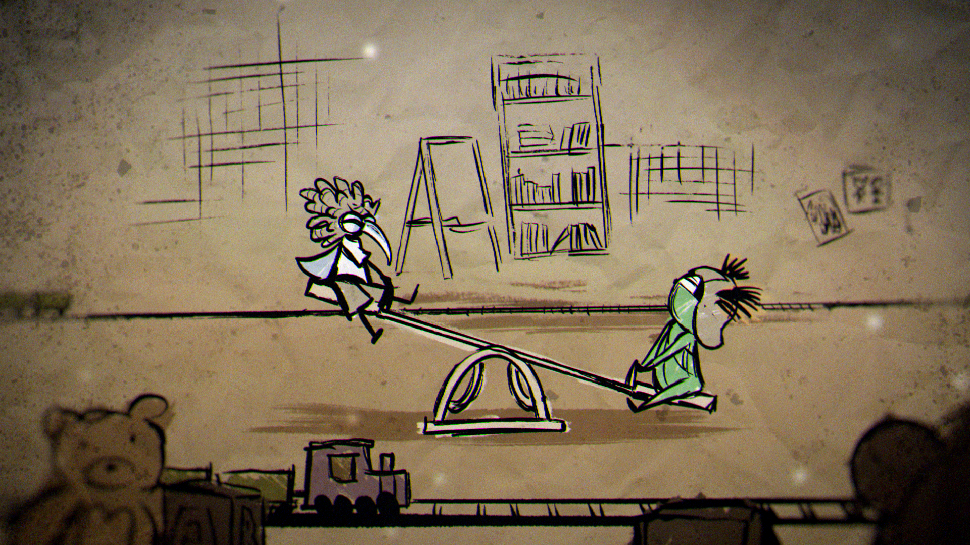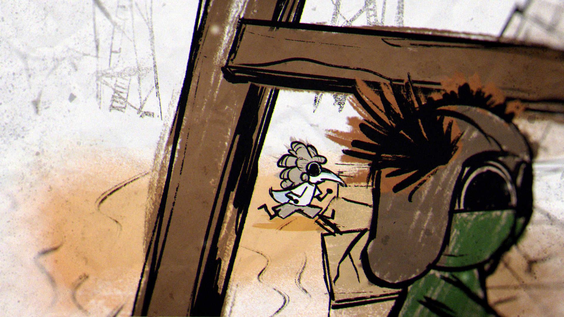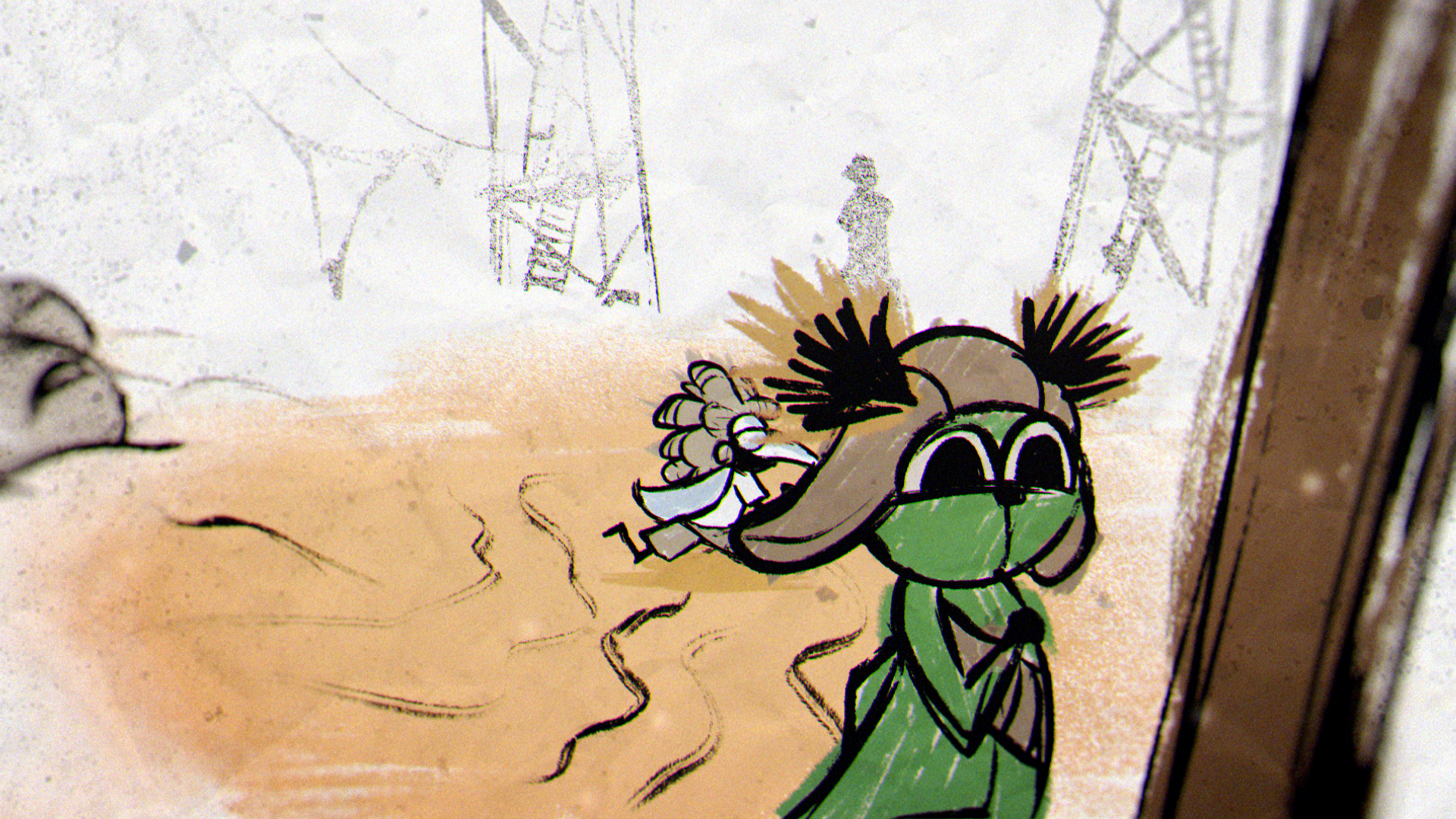The animation was created frame by frame, drawing inspiration from the raw charm and creepiness of children’s drawings. These expressive, hand-animated characters were paired with richly textured background paintings, drawn in a crayon-like style that added unease and a storybook quality to the nightmares on screen.