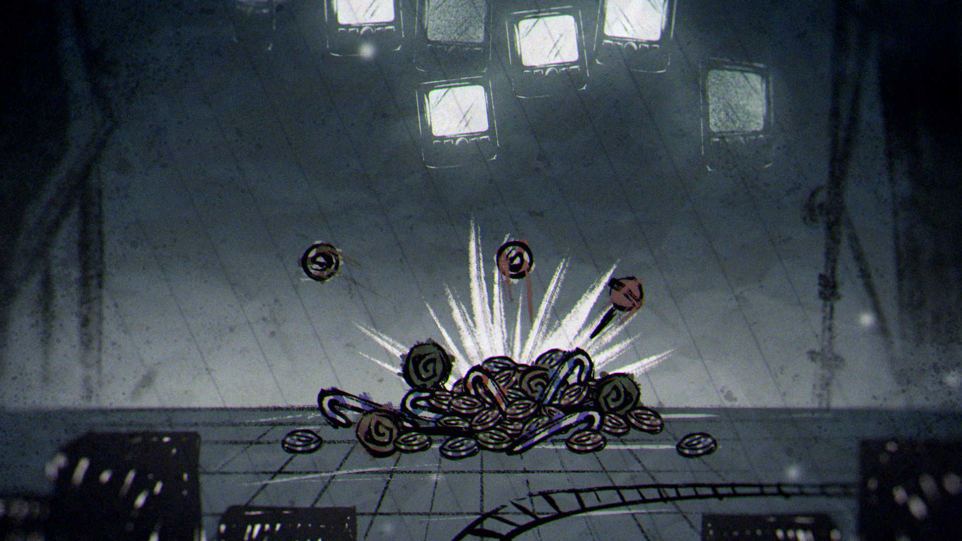 The backgrounds were our playground — an open canvas where we could push texture, and atmosphere, and let the world wobble, stretch, and creep in ways that felt eerie and full of character.